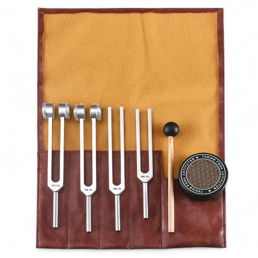 ✔ Set de diapasons pour sonothérapie : Comprend plusieurs diapasons aux fréquences réparatrices, idéales pour la relaxation, la guérison et la méditation.
